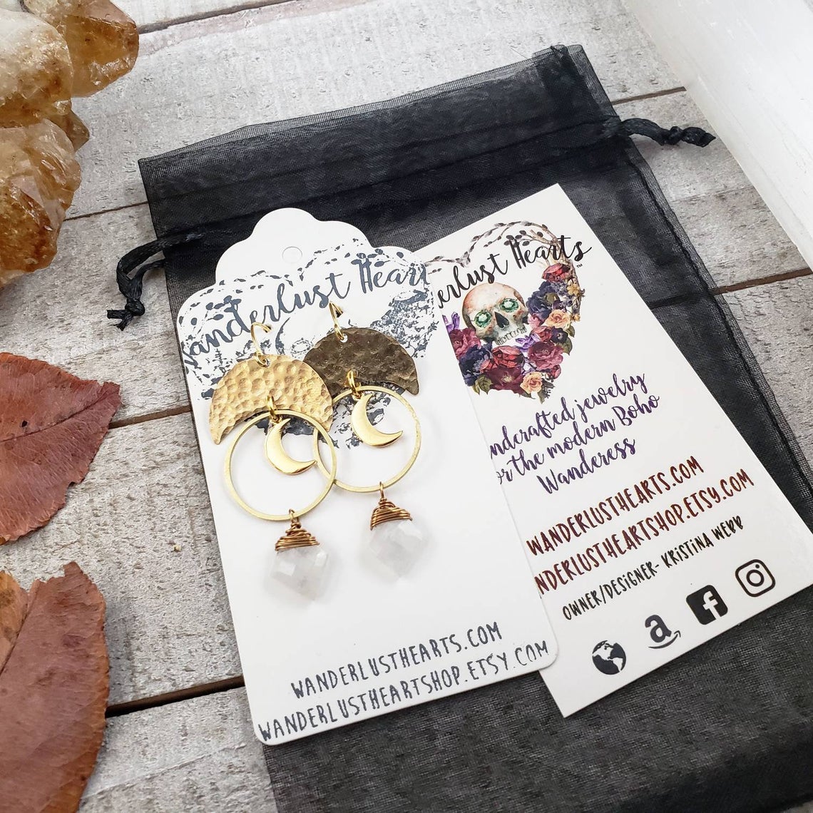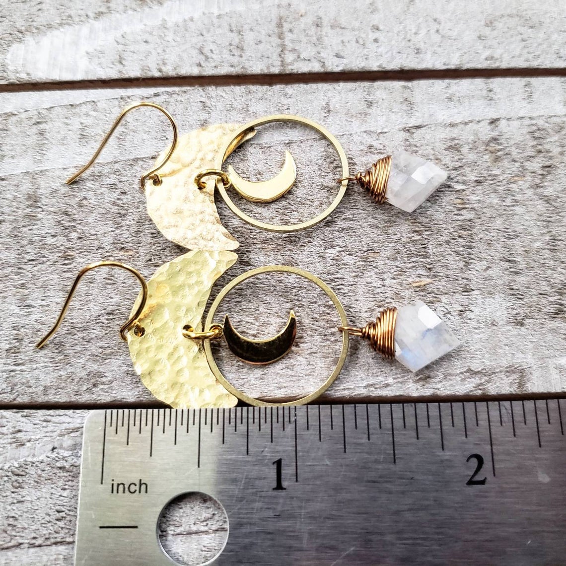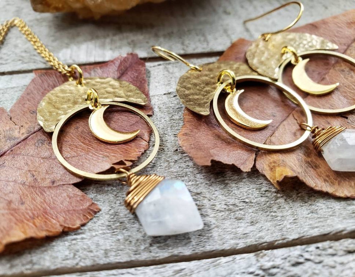Introducing: The "Artemis" collection. The Artemis features hammered metals, celestial elements and geometric shapes that form a gorgeous collection inspired by Greek goddess Artemis. Perfectly completed with rainbow moonstone daggers.