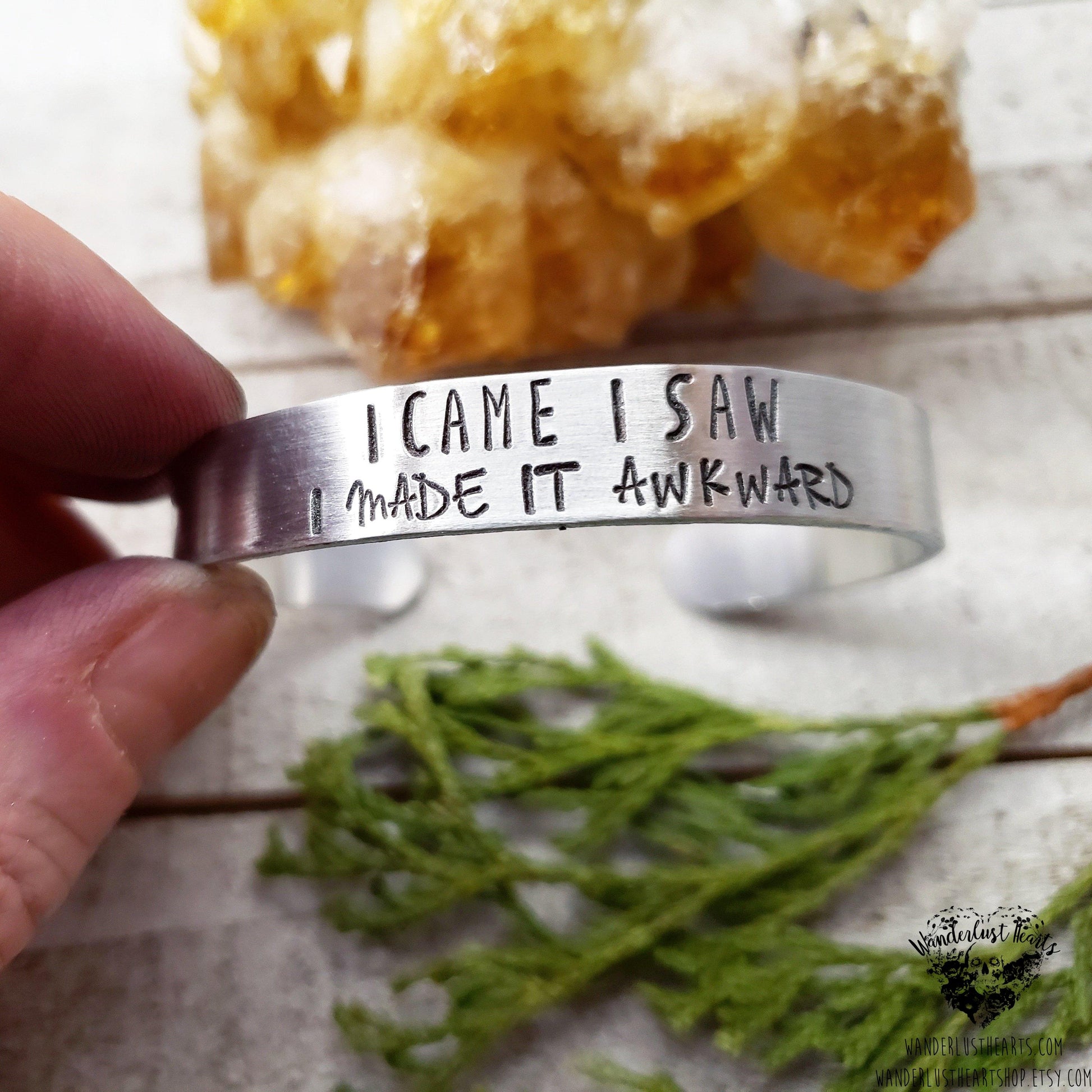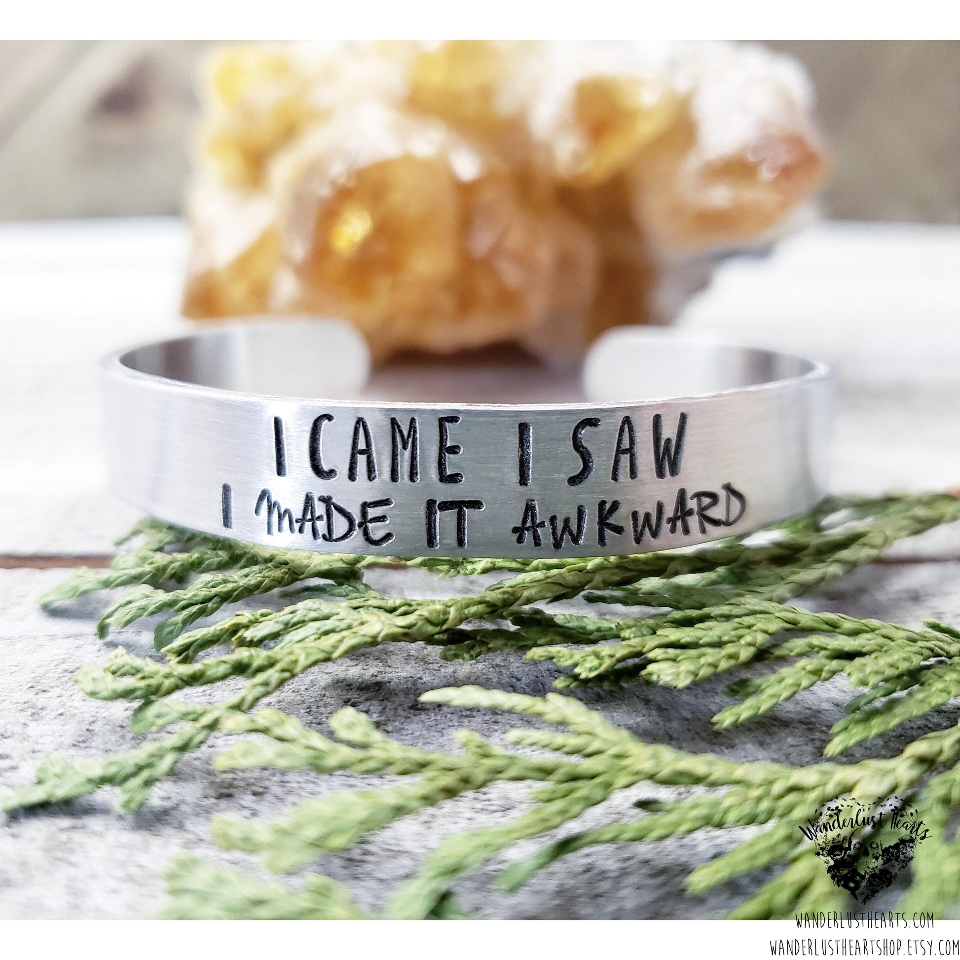 These stamped cuff bracelets make a perfect funny gift for your bff that just seems to always make shit pretty awkward.