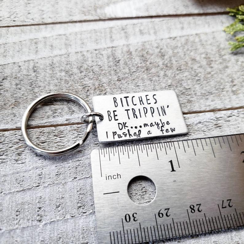 These funny stamped keychains make a hilarious gift for your mature profanity loving friends and family.