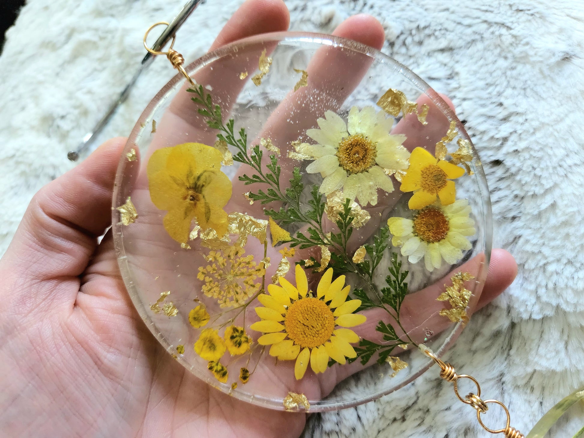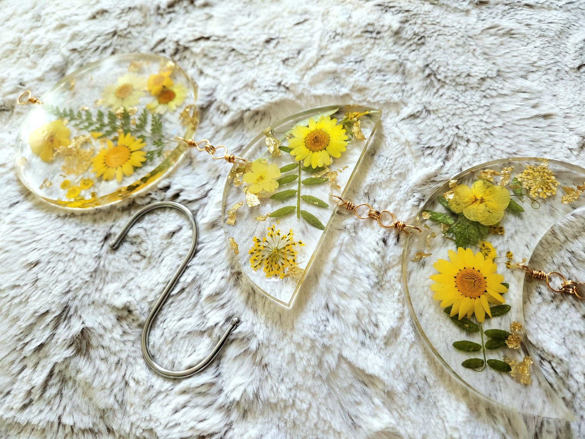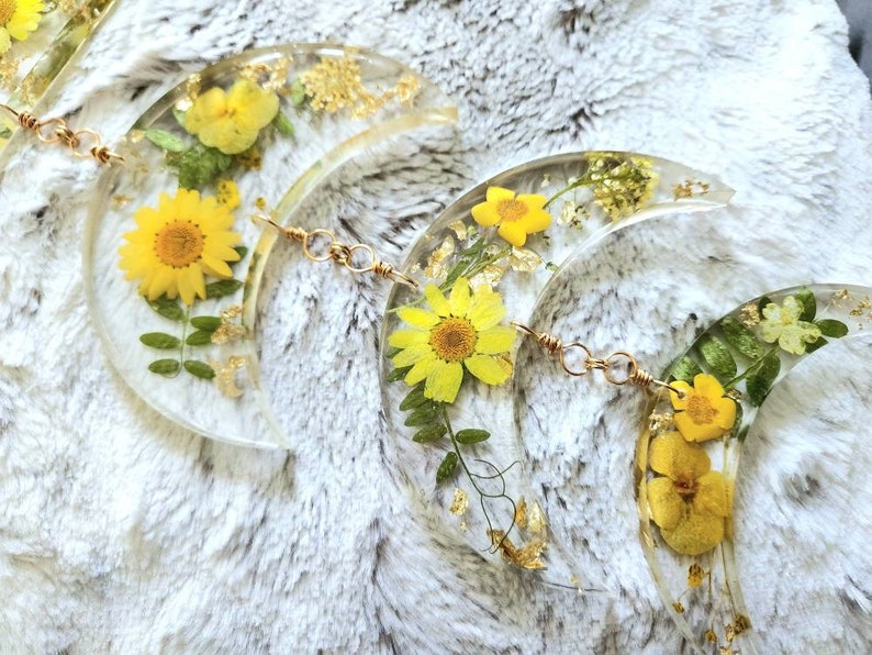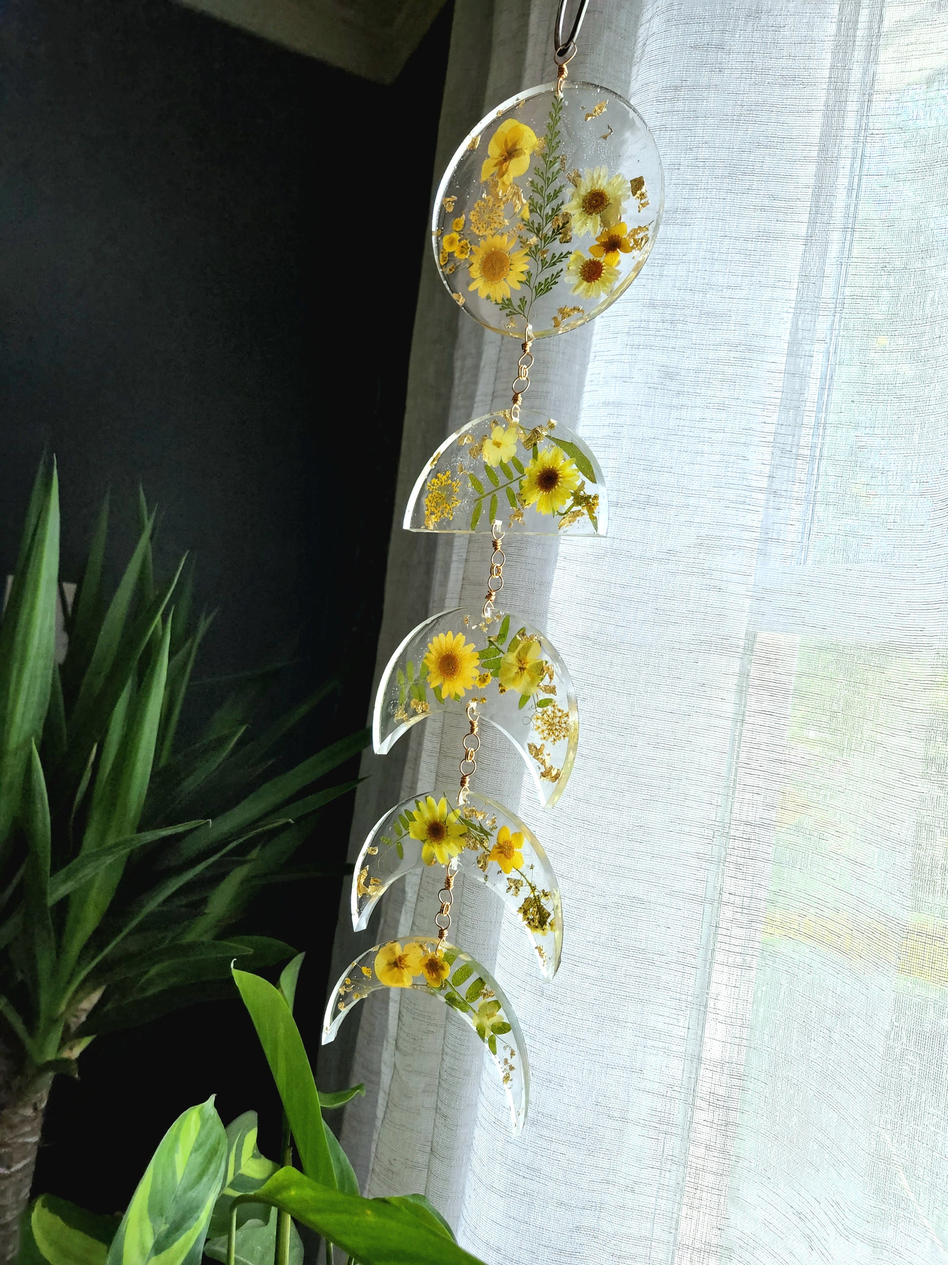 - Each moon phase is a one of a kind due to the unique crafting process with epoxy resin and pressed flowers