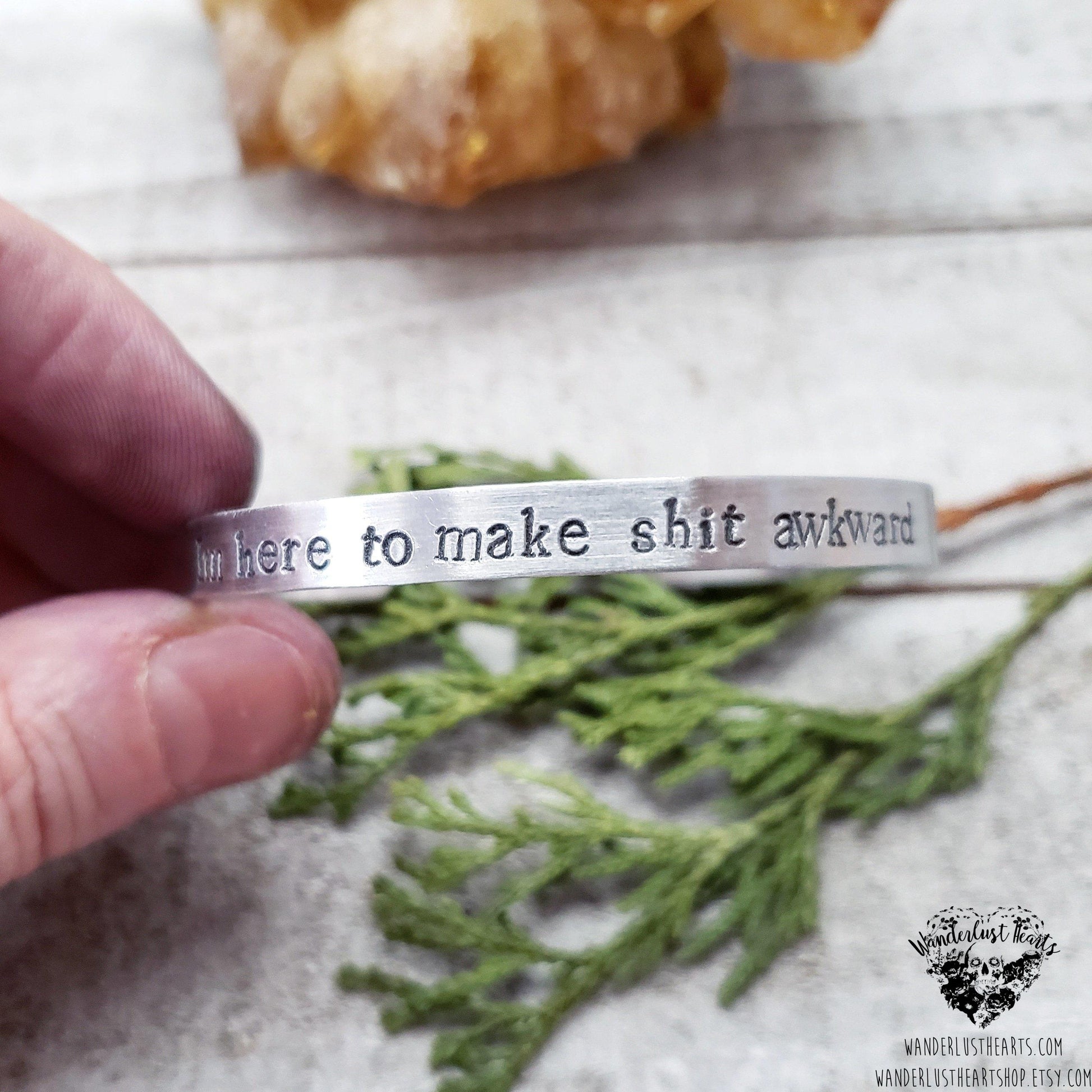 We're Socially awkward and introverted. We make things interesting....or awkward af π Β Wear this stamped cuff proudly everyday.