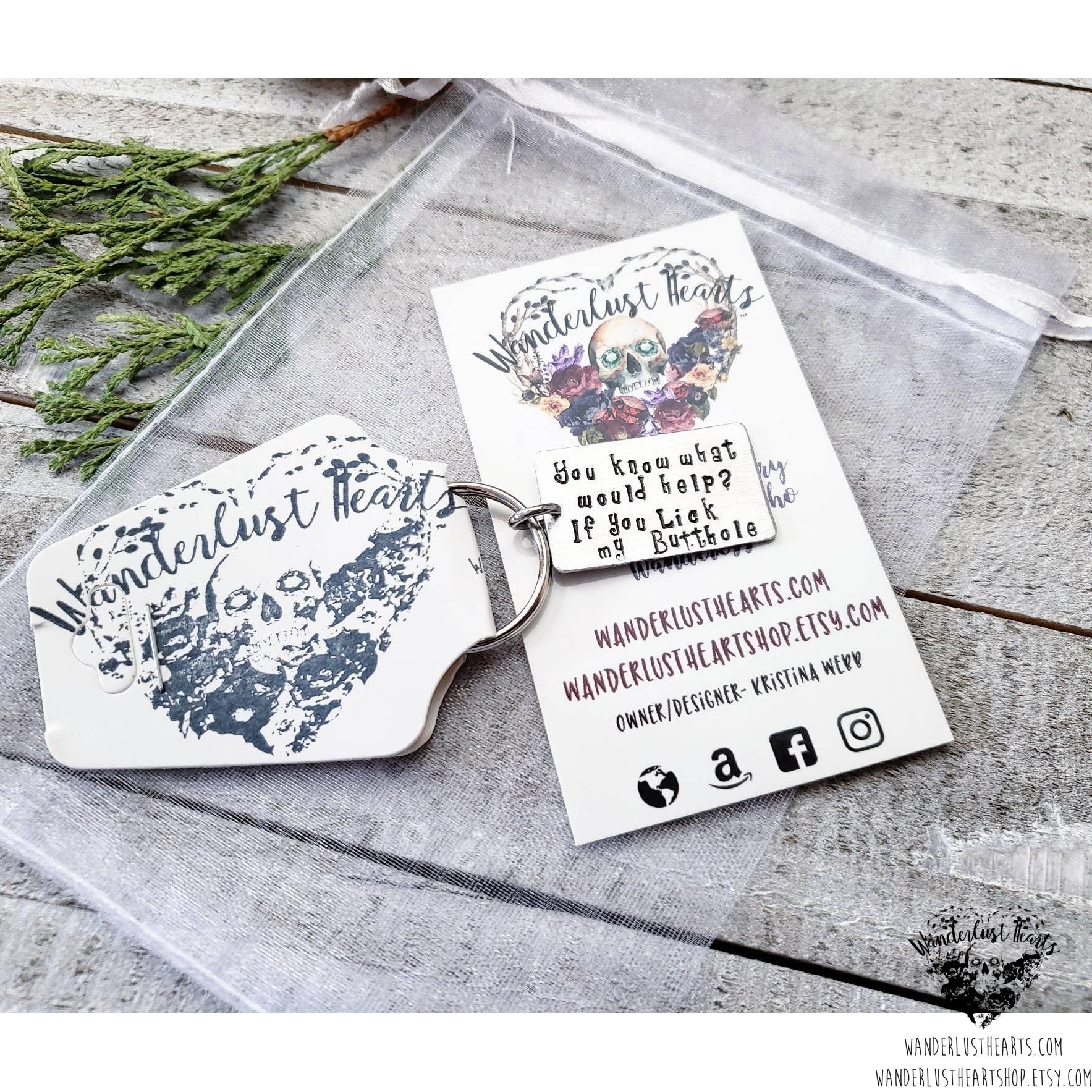 These hilarious stamped keychains make a perfect gift for those that adore a bit of humor. This funny quote is hand stamped onto a silver aluminum charm and finished with a stainless split keyring.