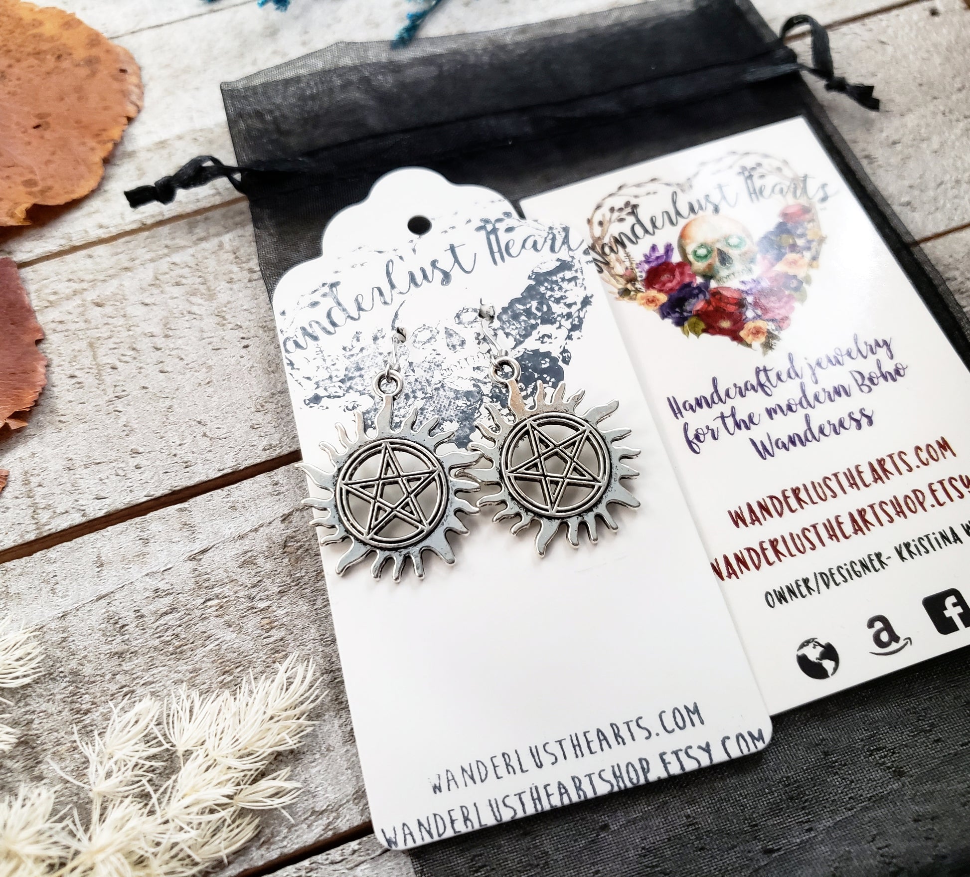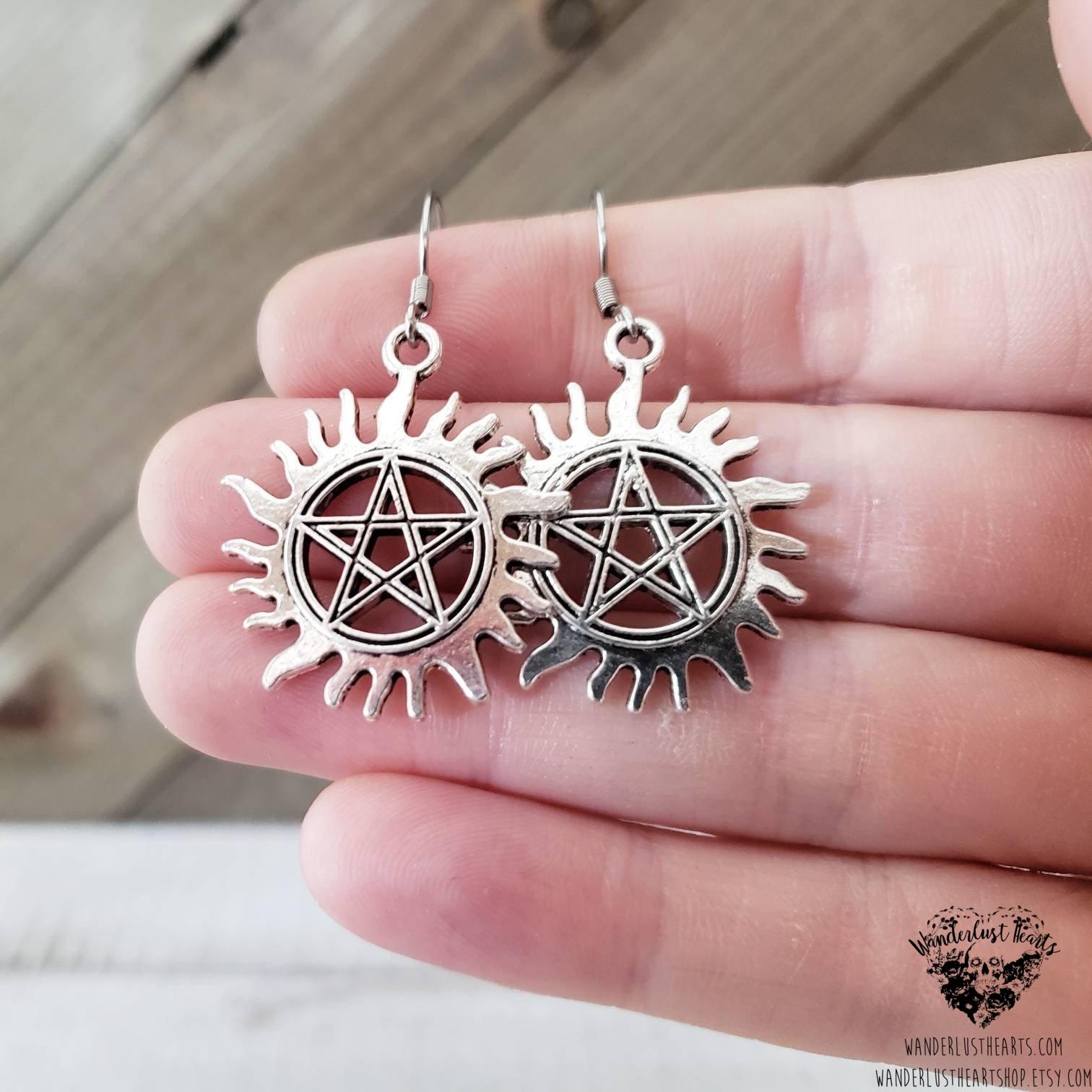 These supernatural anti possession earrings are the perfect extra dose of protection while you're out destroying ghosts. Keep those demons from inhabiting your body with these adorable light weight silver anti possession charm earrings!
